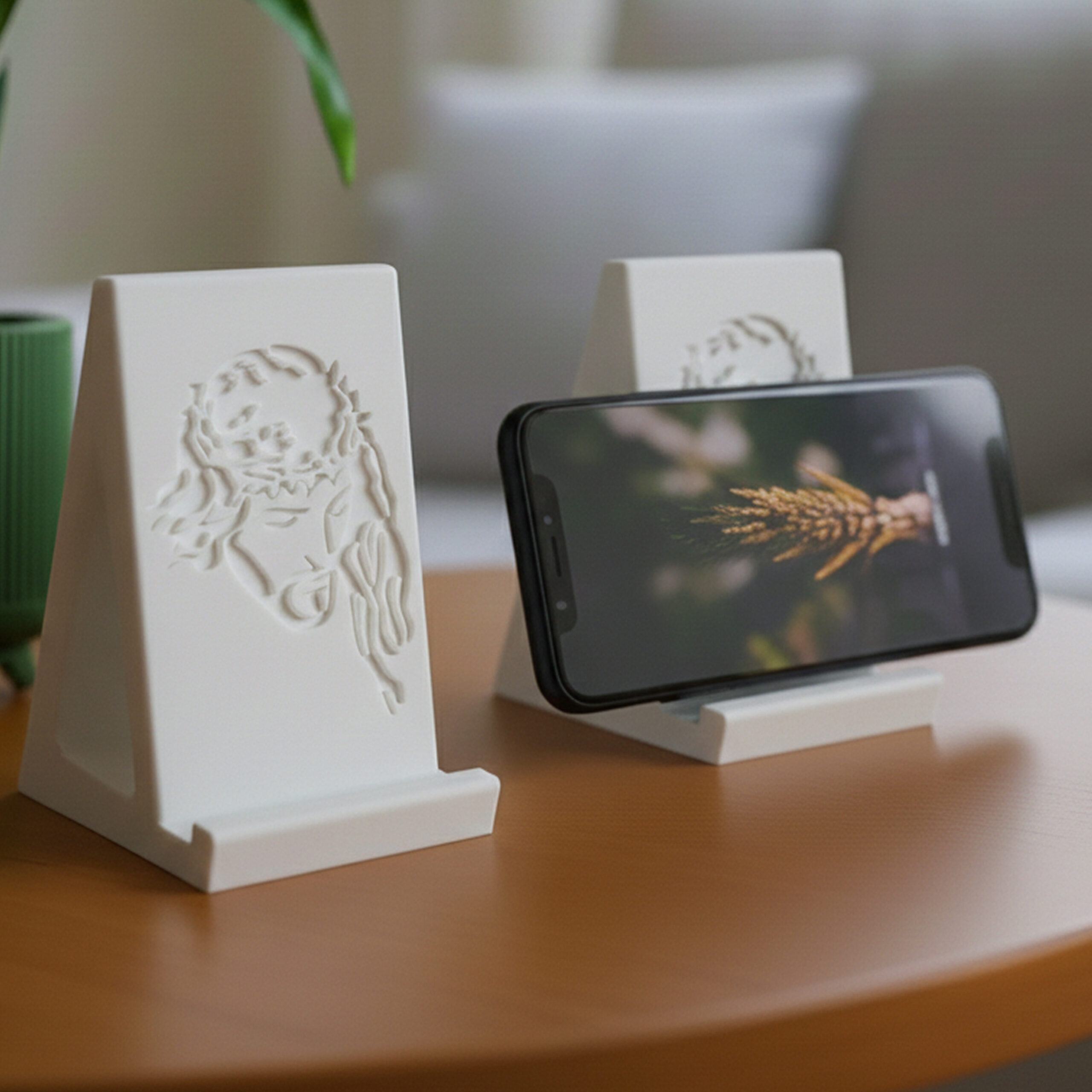 Nossos produtos são feitos com materiais de alta qualidade: as Esculturas e Enfeites Religiosos são confeccionados em resina, um material durável e resistente que permite detalhes finos. Os Artigos para Casa (porta-celular, enfeites com frases, etc.) são produzidos em filamento PLA, um material ecológico e biodegradável que oferece acabamento limpo e profissional.
